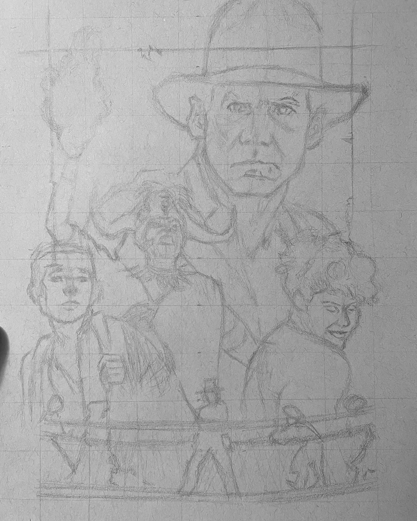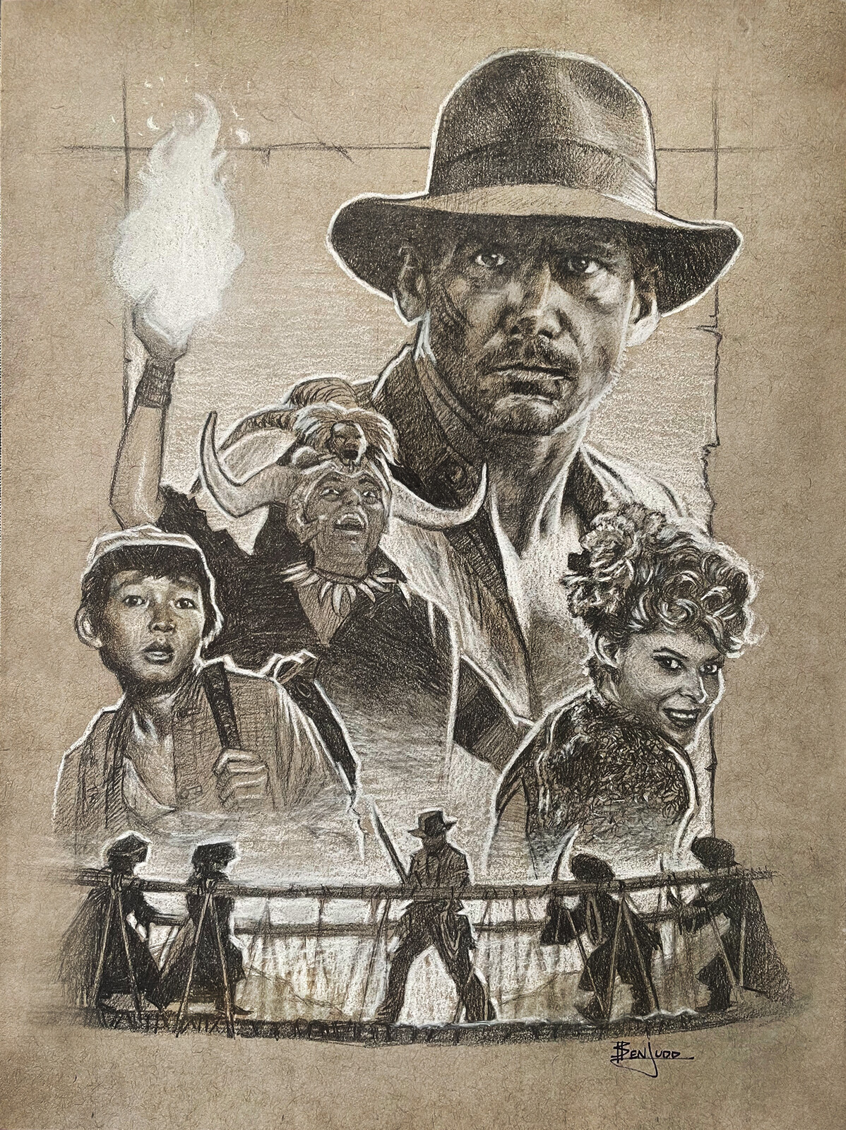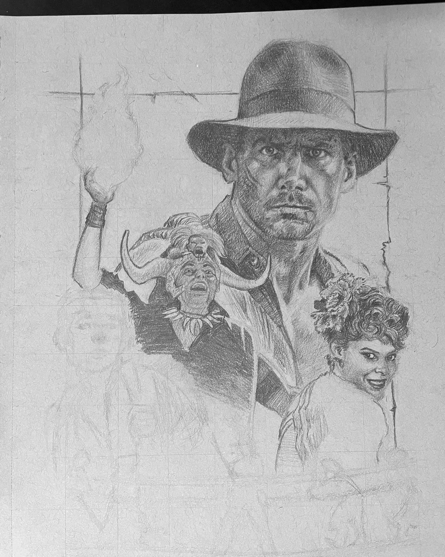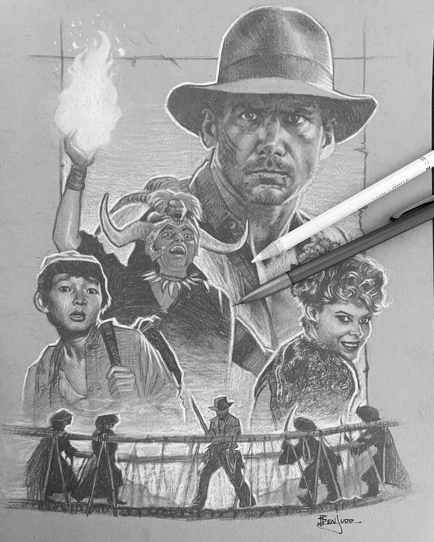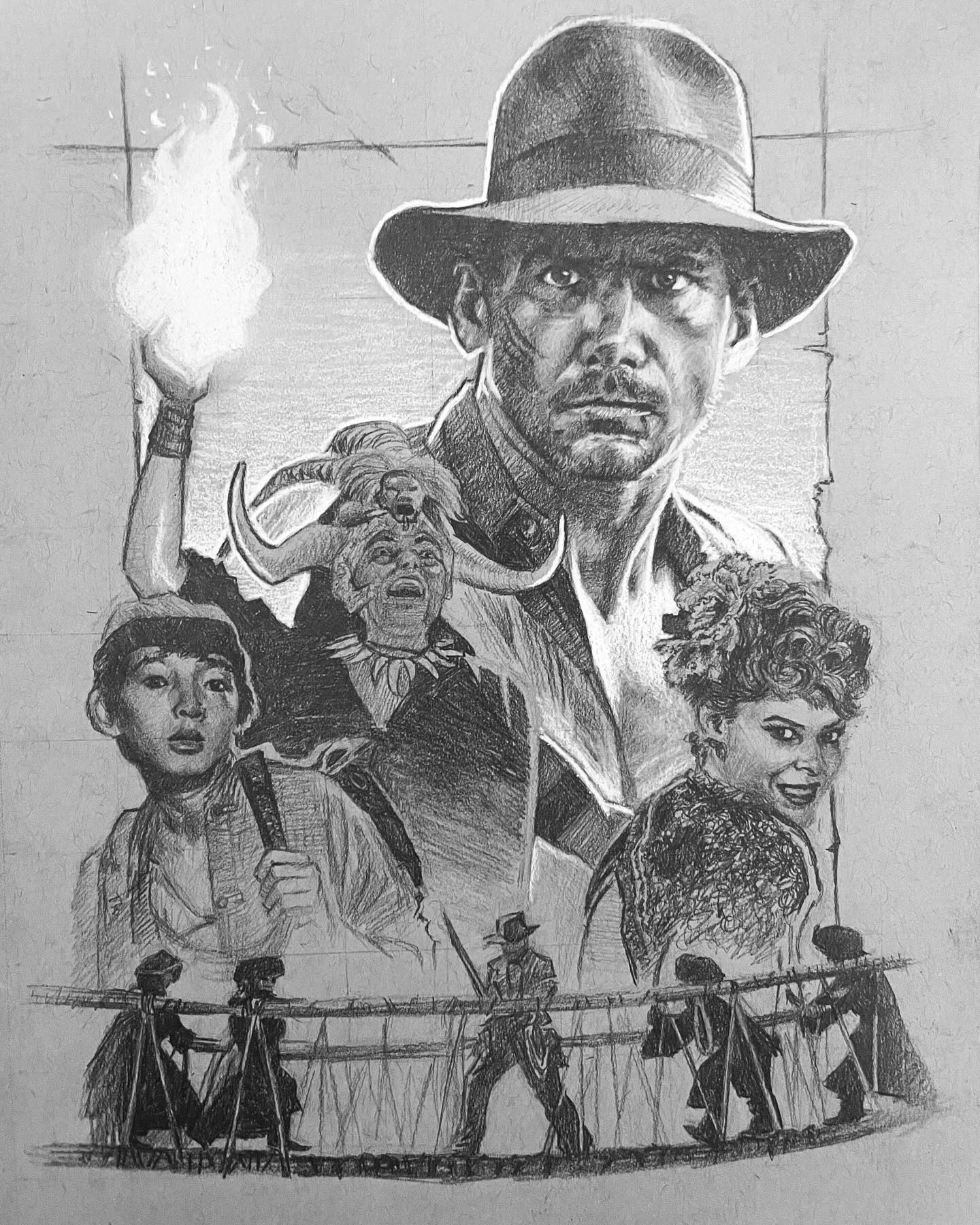 Inspired by the drawings of Drew Struzan. I created this Temple of Doom poster digitally, then drew it on paper and pencil.