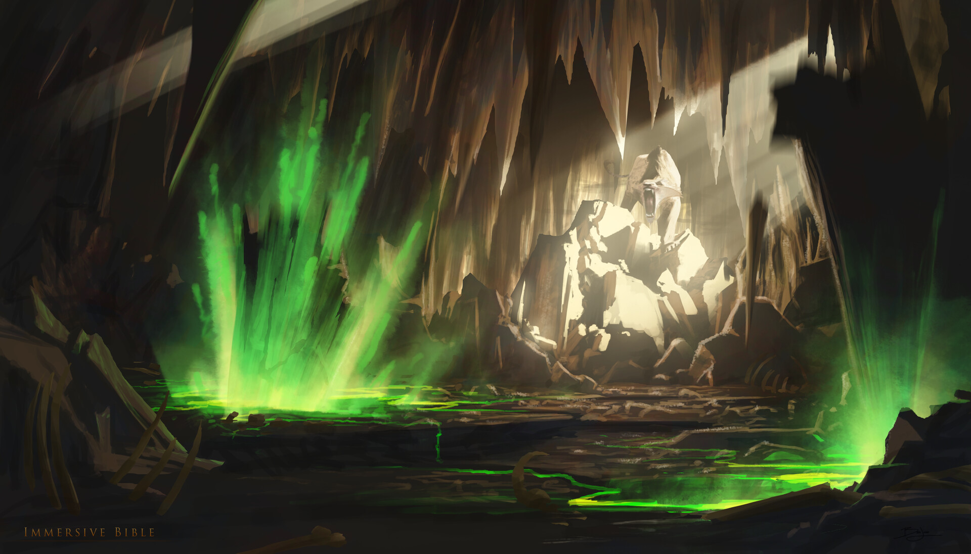 "Lion's cave" showing the mechanic of the stalactites falling and opening up dangerous sections of the ground.